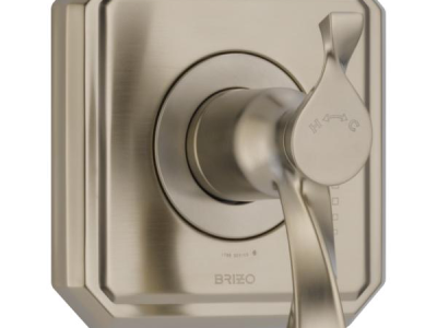Brizo® Valve Trim, Series: TempAssure®, Virage® Collection, 1.75 gpm Shower Flow Rate, Lever Handle, 7-1/2 in H Trim, Thermostatic Ceramic Cartridge, Spray Pattern: H2Okinetic®, 1 Spray Functions, 60 psi Pressure, Wall Mounting, For Use With: MultiChoice® R60000 Series Universal Rough-In Valve Body, Zinc, Brushed Nickel, Domestic