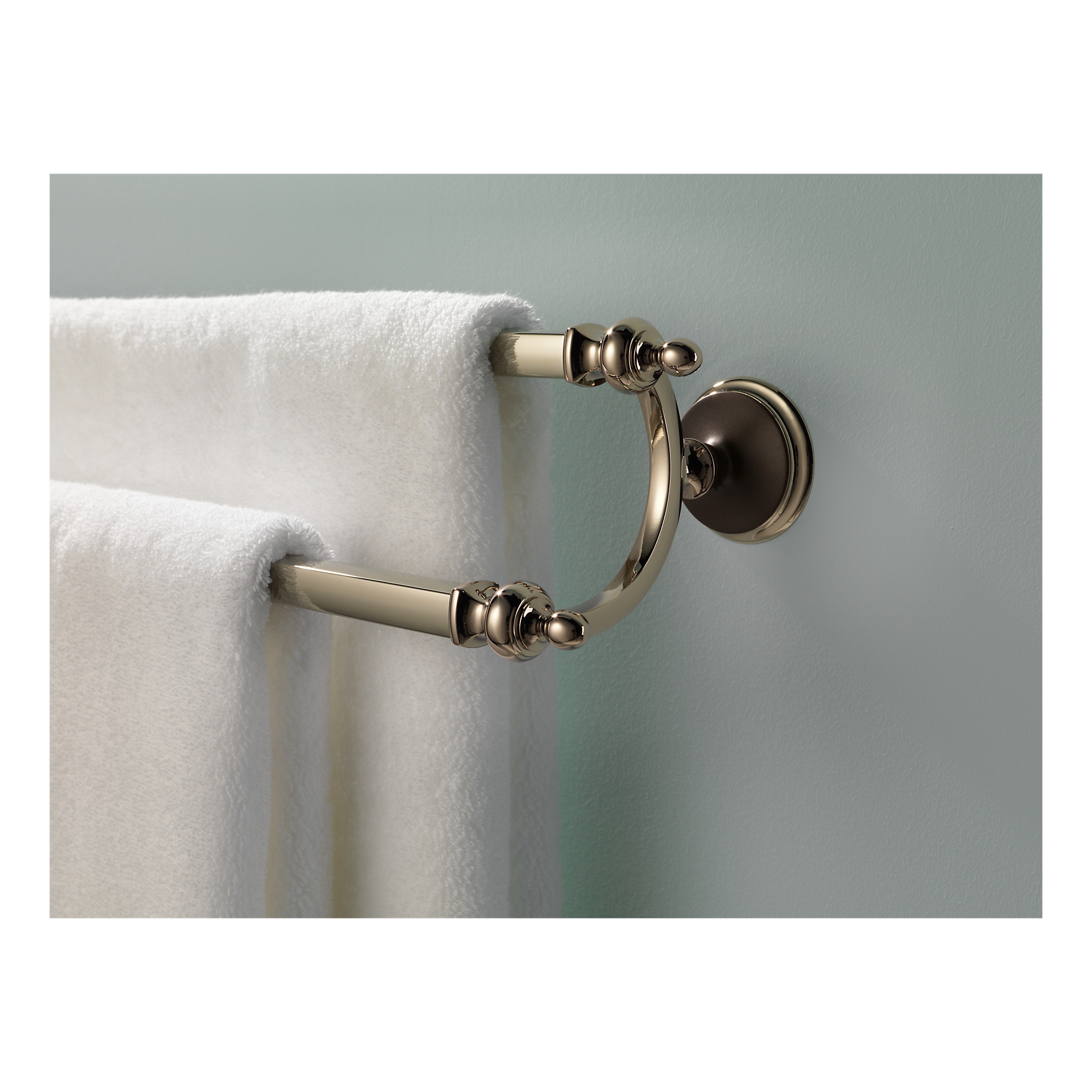Brizo® Towel Bar, Double, Collection: Charlotte®, 24 in Bar Length, 26-1/8 in Overall Length, 4-1/2 in Overall Depth, 2-3/8 in Overall Height, 2-3/8 in Base, Brass, Cocoa Bronze/Polished Nickel, Import