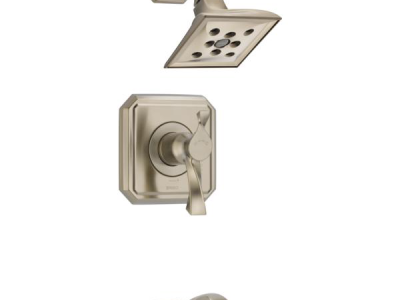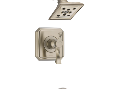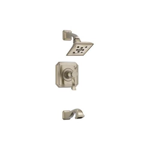 Brizo® Tub and Shower Faucet Trim, Series: TempAssure®, Virage® Collection, 2 gpm Shower Flow Rate, Pull-Down Diverter Spout, 7-3/4 in Spout Reach, 1 Handles, Metal Lever Handle, 7-1/2 in H Trim, Thermostatic Ceramic Cartridge, Hand Shower: No, Spray Pattern: Full Body, 1 Spray Functions, 80 psi Pressure, Wall Mounting, Cast Brass, Brushed Nickel