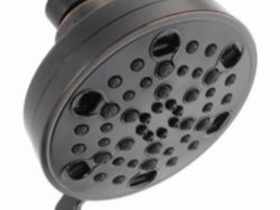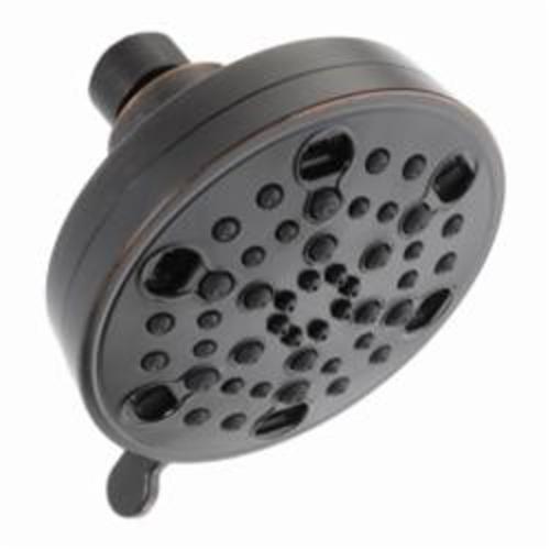 DELTA® Shower Head, 5-Setting, Contemporary Collection, 2 gpm Minimum, 1/2 in IPS Connection, Round Shape, 5 Sprays, Spray Pattern: Full Body/Full Body with Massage/H2OKinetic®/Massage/Pause, 80 psi Pressure, 4-3/16 in Head, 3-1/4 in Overall Height, Plastic, Venetian Bronze, Import