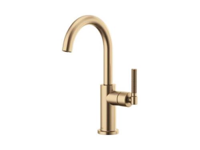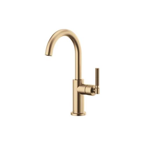 Brizo® Bar Faucet, Litze™, 1.8 gpm, Arc Spout, 6 in Spout Reach, 11-5/8 in Spout Height, Knurled Lever, 1 Handles, 1 Faucet Holes, 1-1/8 to 1-1/2 in Faucet Hole, 1/2-14, NPSM, 3 in Maximum Deck Thickness, Deck Mount, Ceramic Disc Valve/Cartridge, Solid Brass, Luxe Gold, Import