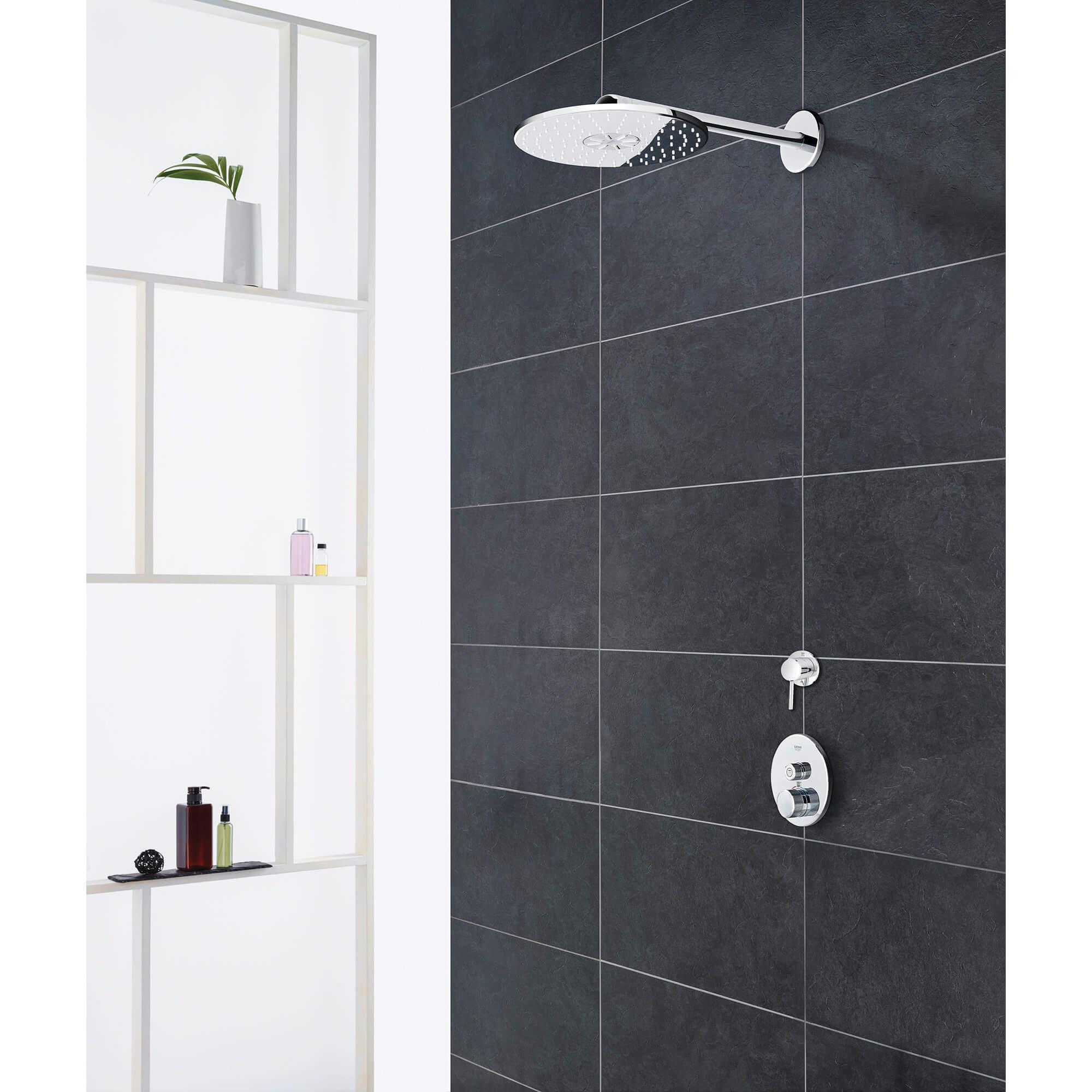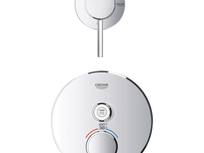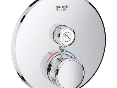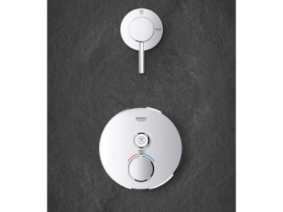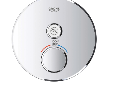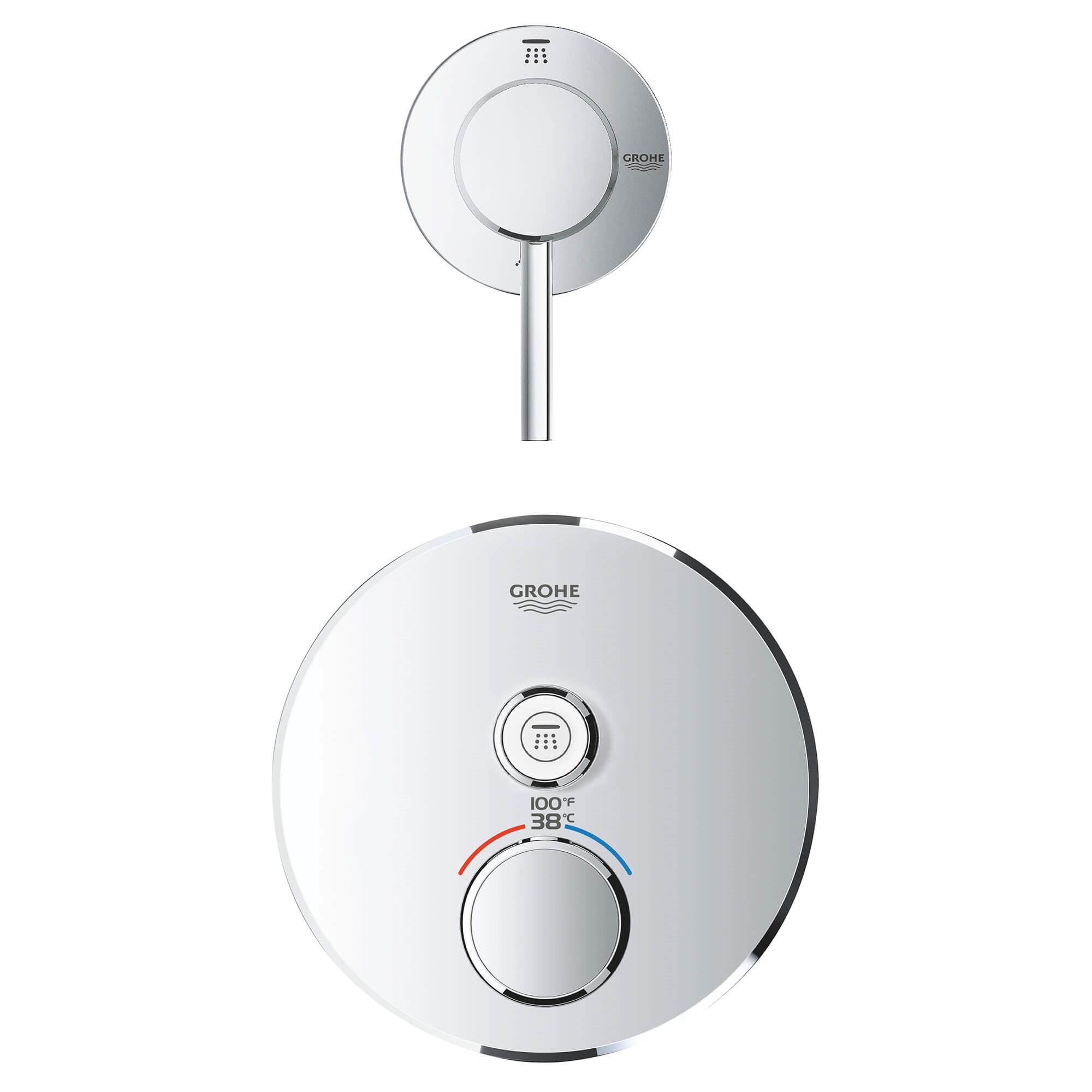 Choose a thermostat that is as flexible as possible for your most enjoyable shower or bath ever. Packed with useful features, the Grohtherm SmartControl concealed thermostat features a minimalist design that will enhance any modern bathroom. The innovative SmartControl technology allows you to select your desired spray source and adjust the water volume at the push-turn of a button. The three valves offer total flexibility, whatever your shower set up - you can control, switch between or even combine different spray patterns and water outlets - perfect for spaces where you want to have hand, head and side showers, as well as a bath. Integrated GROHE TurboStat technology prevents any unpleasant temperature fluctuations. GROHE EasyLogic markings and textured buttons with exchangeable symbols make it easy and intuitive to use. Family-friendly, the GROHE SafeStop override button allows you to set a maximum temperature of 100 deg F/38 deg C to prevent scalding. Water-saving GROHE EcoJoy technology gives you the option of a reduced flow rate with no compromise on enjoyment. Thanks to the GROHE QuickFix® system it's swift and straightforward to install. The slim profile makes it easy to keep clean and the durable StarLight® Chrome finish will look pristine for years to come. With a slim, round design perfect for that minimalist, streamlined look, this product is bound to enhance your bathroom scheme. Please note that this product must be installed in combination with the GROHE Rapido® SmartBox (35601000).