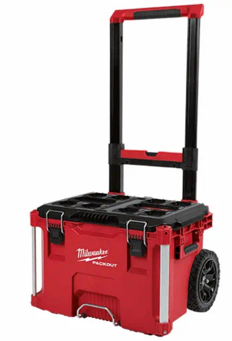 The PACKOUT rolling tool box is constructed with impact resistant polymers and metal reinforced corners so it can withstand harsh jobsite environments. The rolling tool storage box connects with all other PACKOUT system components via integrated locking cleats and features a 250 lbs of weight capacity. An industrial grade extension handle and 9 inch all terrain wheels ensure you can roll the tool box anywhere on the jobsite. An IP-65 rated weather seal protects your tools and accessories from rain and other jobsite debris. Interior organizer trays allow you to keep equipment organized to fit your needs. Reinforced hinges and carry handle ensure the rolling tool box is easily transportable wherever you need it. Our PACKOUT modular storage allows you to customize and build your own storage system to easily transport and organize your tools and accessories.