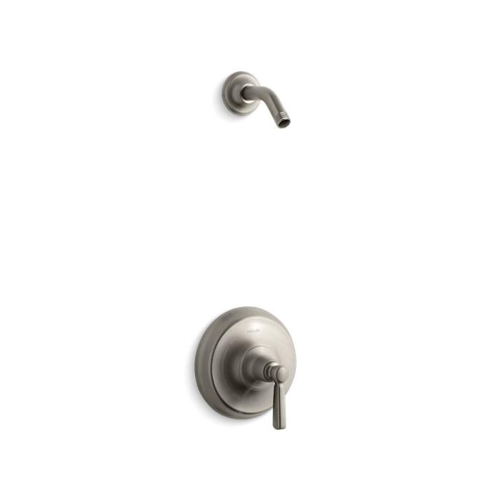 Kohler® Shower Valve Trim, Bancroft® Rite-Temp®, 4-1/2 in Spout Reach, 1 Handles, Metal Lever, 6-3/8 in Dia x 4-3/8 in D Trim, Pressure Balanced Valve/Cartridge, Hand Shower Yes/No: No, For Use with: Kohler® Shower Head, Vibrant® Brushed Nickel