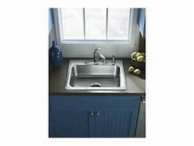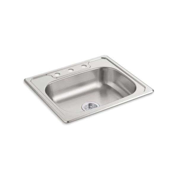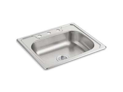 Sterling®, 14631-3-NA, Kitchen Sink With SilentShield® Technology, Middleton® Collection, Rectangle Shape, 3-5/8 in Drain Opening, 3 Faucet Holes, 4 in Faucet Hole Spacing, 1 Bowls, 25 in L x 22 in W x 6 in H Overall, Top Mounting, 20 ga Stainless Steel, Luster