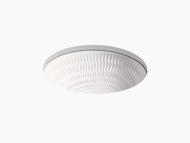- Oval basin with carved textural pattern.