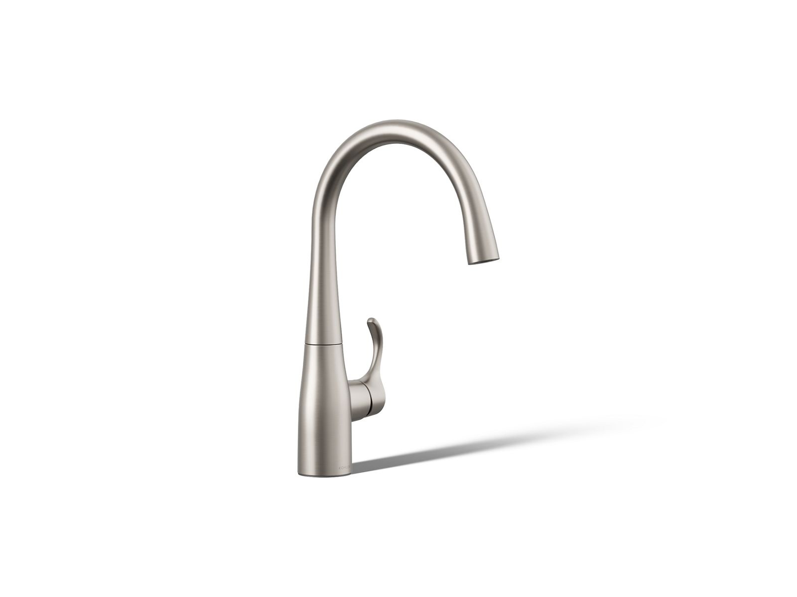 Kohler® Bar Sink Faucet, Simplice® Collection, 1.5 gpm Flow Rate, High-Arc Swivel Spout, 7-1/4 in Spout Reach, 8-1/16 in Spout Height, Lever Handle, 1 Handle, 1 Faucet Hole, 3/8 in Connection, C Connection, 2-1/2 in Maximum Deck Thickness, Deck Mounting, Ceramic Disc, 13 in H, Metal, Vibrant® Stainless Steel