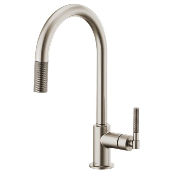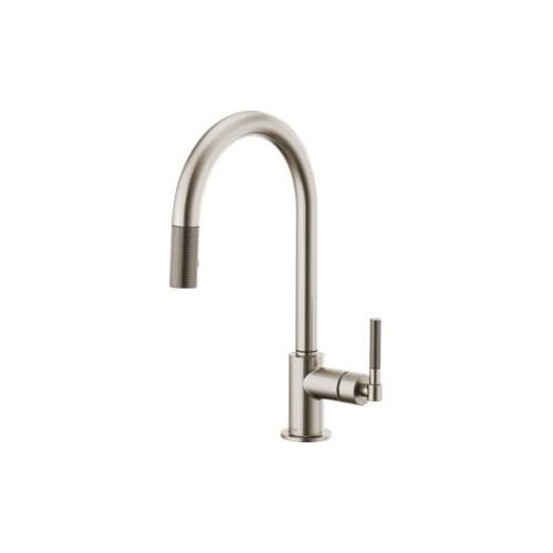 Brizo® Kitchen Faucet, Pull-Down, Litze™ Collection, 1.8 gpm Flow Rate, Arc Spout, 8-11/16 in Spout Reach, 16 in Spout Height, Knurled Lever Handle, 1 Handles, 1 Faucet Holes, 1-1/4 to 1-1/2 in Faucet Hole, 3/8 in Connection, Compression Connection, Spray Pattern: Stream, Function: Traditional, 2 Spray Functions, 3 in Maximum Deck Thickness, Deck Mounting, Euro-Motion Ceramic Disc Cartridge, Brass, Stainless Steel