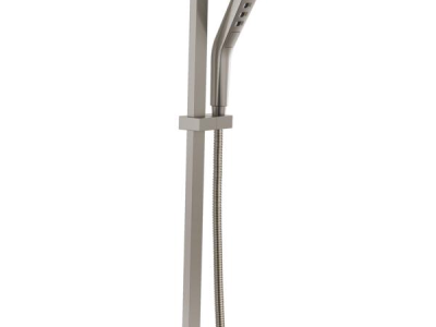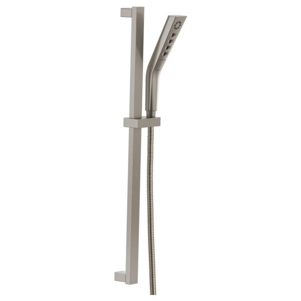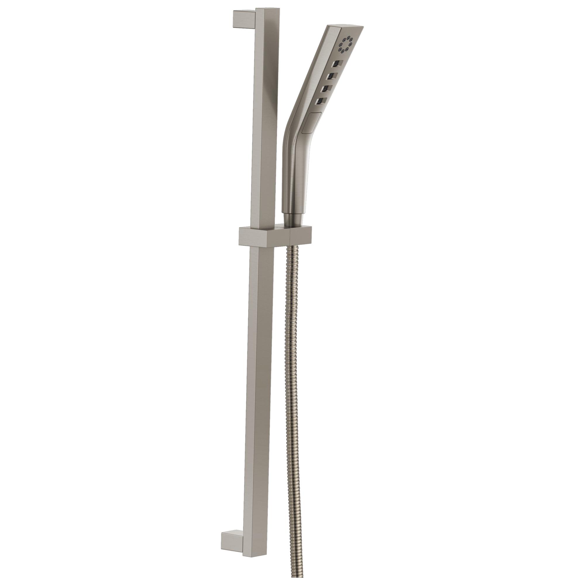 DELTA® Handshower, Universal, 3-Setting Shower Head Patterns, 1.75 gpm Flow Rate, 60 to 82 in Hose Length, H2OKinetic®/Massaging/Pause/H2Okinetic® PowerDrench® Spray, 80 psi Pressure, NPSM Connection, Metal Hose, Plastic/Stainless Steel, Lumicoat™ Stainless, 3.94 in L x 3.5 in W x 26.94 in H Dimensions, With Slide Bar: Yes, Import