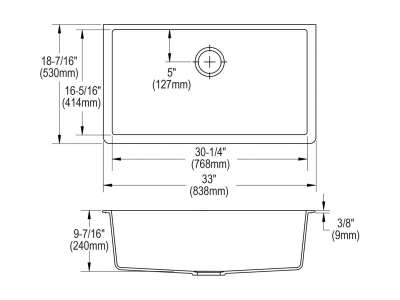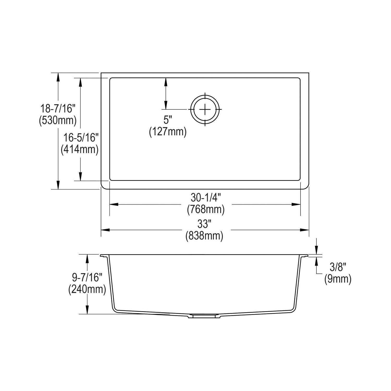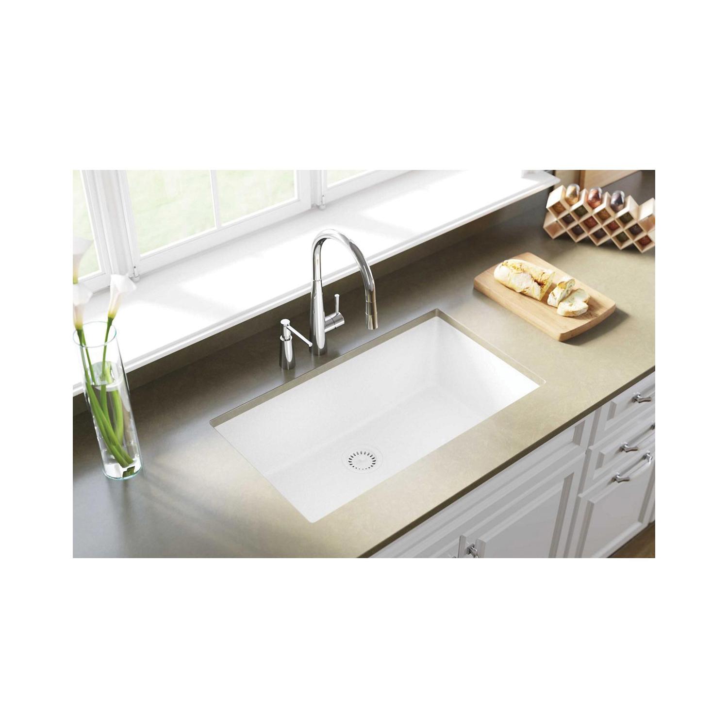 Elkay®, ELGRU13322WH0, Kitchen Sink, Traditional, Quartz Classic® Collection, Rectangle Shape, 30-1/4 in Bowl Length, 16-5/16 in Bowl Width, 9-7/16 in Bowl Depth, 3-1/2 in Drain Opening, 1 Bowls, 33 in L x 18-7/16 in W x 9-7/16 in H Overall, Undermount Mounting, White, Import