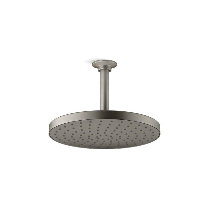 Kohler® Rainhead, Awaken®, 2 gpm Maximum Flow Rate, 1/2-14 NPT, Spray Pattern: Full Body, Ceiling/Wall Mount, 45 psi, 9-7/8 in Dia x 2 in D Head, Vibrant® Brushed Nickel