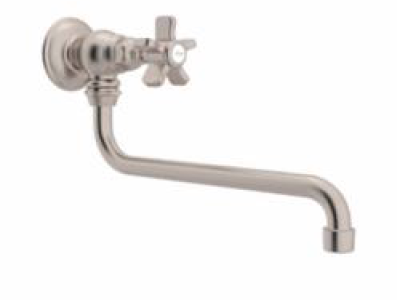 Rohl® Pot Filler, Italian Country Kitchen, 1.5 gpm, Swivel Spout, 11-3/4 in Spout Reach, Five Spoke, 1 Handles, No Side Spray(Y/N), 1 Faucet Holes, 2-23/32 in Dia Faucet Hole, 1/2 in, FNPT, Wall Mount, Ceramic Disc Valve/Cartridge, Brass, Satin Nickel