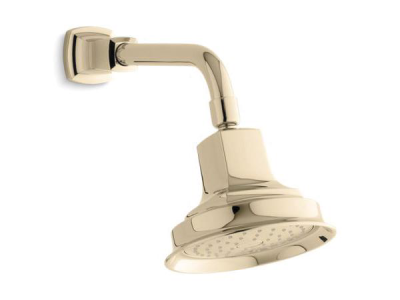 Kohler® Showerhead, 1-Function, Margaux®, 2.5 gpm Minimum Flow Rate, 1/2 in NPT, Round, Number of Sprays: 1, Spray Pattern: Full Body, Wall Mount, 5-15/16 in Dia x 5-1/4 in H Head, 5-15/16 in Overall Length, 5-15/16 in Overall Width, 5-5/16 in Overall Height, Vibrant® French Gold