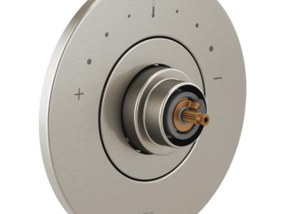 Brizo® Valve Trim, Litze™ Collection, 7 in Dia x 2-1/4 in D Trim, Thermostatic Ceramic Cartridge, 120 deg F, Wall Mounting, Luxe Nickel