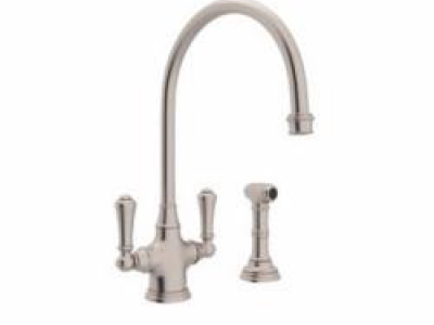 Rohl® U.4710STN-2 Perrin & Rowe® Kitchen Mixer, 1.8 gpm Flow Rate, C Spout, Satin Nickel, 2 Handles