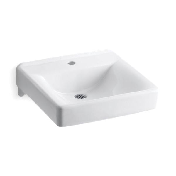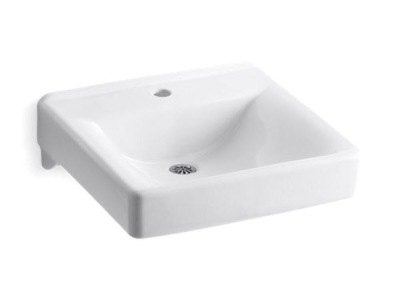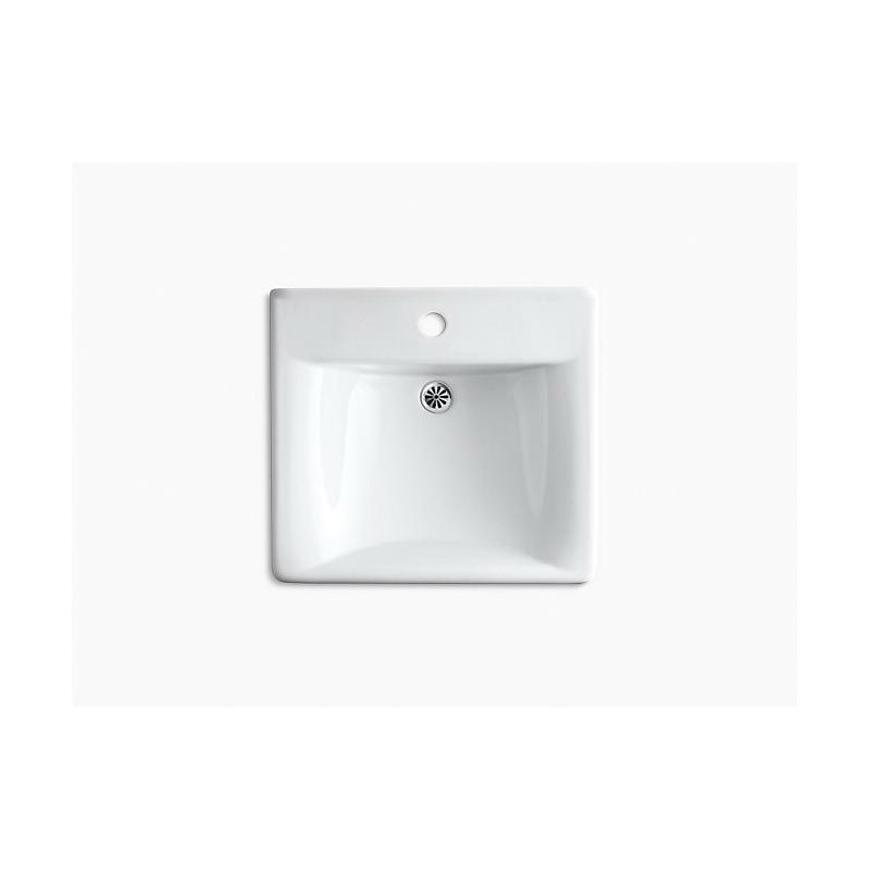 Kohler®, 2084-N-0, Bathroom Sink, Soho® Collection, Squared Shape, 18 in L x 13 in W Bowl, 1-3/4 in Drain Opening, 1 Faucet Holes, 6-5/8 in Faucet Hole Spacing, 1 Basins, 20 in W x 18 in D x 7 in H Overall, Wall/Concealed Arm Mounting, Vitreous China, White, ADA Compliance: Yes