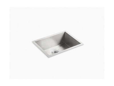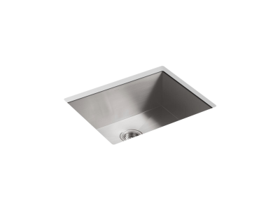 Kohler®, 3822-NA, Kitchen Sink, Vault™ Collection, Rectangular Shape, 22-1/4 in Bowl Length, 16-9/16 in Bowl Width, 9 in Bowl Depth, 3-7/8 in Drain Opening, 1 Bowls, 24 in L x 18-1/4 in W x 9-3/8 in H Overall, Undermount Mounting, Stainless Steel, Import