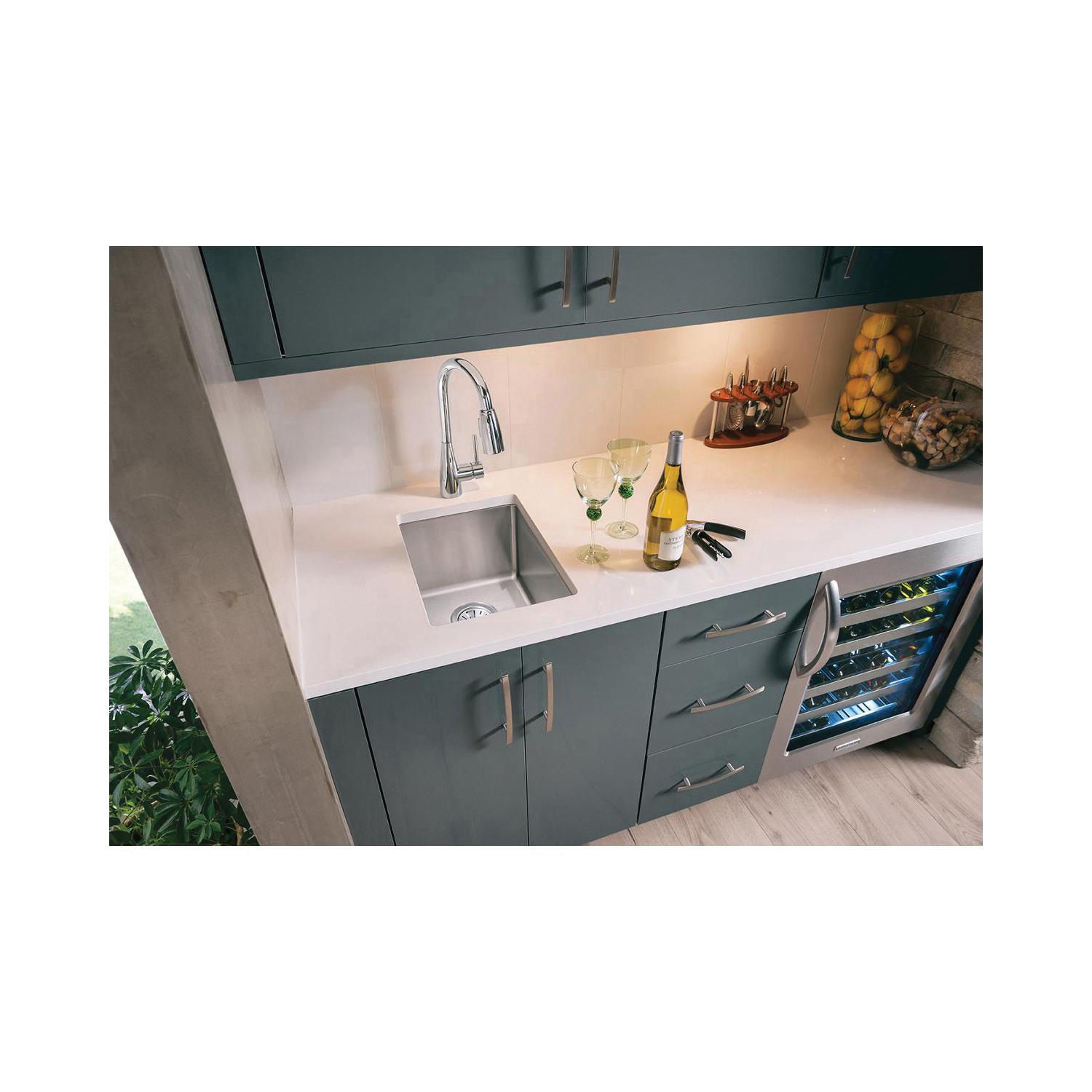 Elkay®, ECTRU12179T, Kitchen Bar Sink, Transitional, Crosstown® Collection, Rectangle Shape, 12 in Bowl Length, 17 in Bowl Width, 9 in Bowl Depth, 3-1/2 in Drain Opening, 1 Bowls, 13-1/2 in L x 18-1/2 in W x 9 in H Overall, Undermount Mounting, 18 ga 304 Stainless Steel, Polished Satin, Import