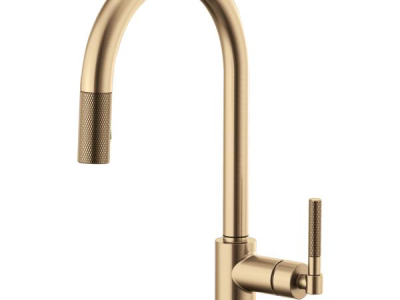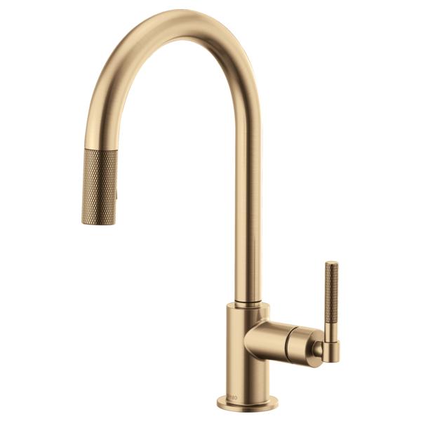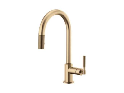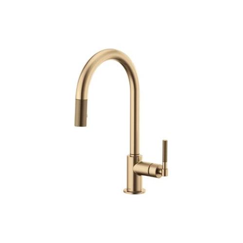 Brizo® Kitchen Faucet, Pull-Down, Litze™ Collection, 1.8 gpm Flow Rate, Arc Spout, 8-11/16 in Spout Reach, 16 in Spout Height, Knurled Lever Handle, 1 Handles, 1 Faucet Holes, 1-1/4 to 1-1/2 in Faucet Hole, 3/8 in Connection, Compression Connection, Spray Pattern: Stream, Function: Traditional, 2 Spray Functions, 3 in Maximum Deck Thickness, Deck Mounting, Euro-Motion Ceramic Disc Cartridge, Brass, Luxe Gold