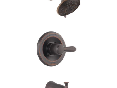 DELTA® Tub and Shower Trim, Series: Monitor® 14, Lahara® Collection, 1.75 gpm Shower Flow Rate, Pull-Up Diverter Spout, 5-1/2 in Spout Reach, 1 Handles, Metal Lever Handle, 7 in Dia Trim, 1222 Pressure Balanced, Hand Shower: No, Spray Pattern: Full Body/Full Body with Massage/Fast Massage/Pause/Soft Drench, 1 Spray Functions, 80 psi Pressure, Wall Mounting, For Use With: MultiChoice® R10000 Series Universal Rough-In Valve Body, Solid Brass, Venetian Bronze, Domestic