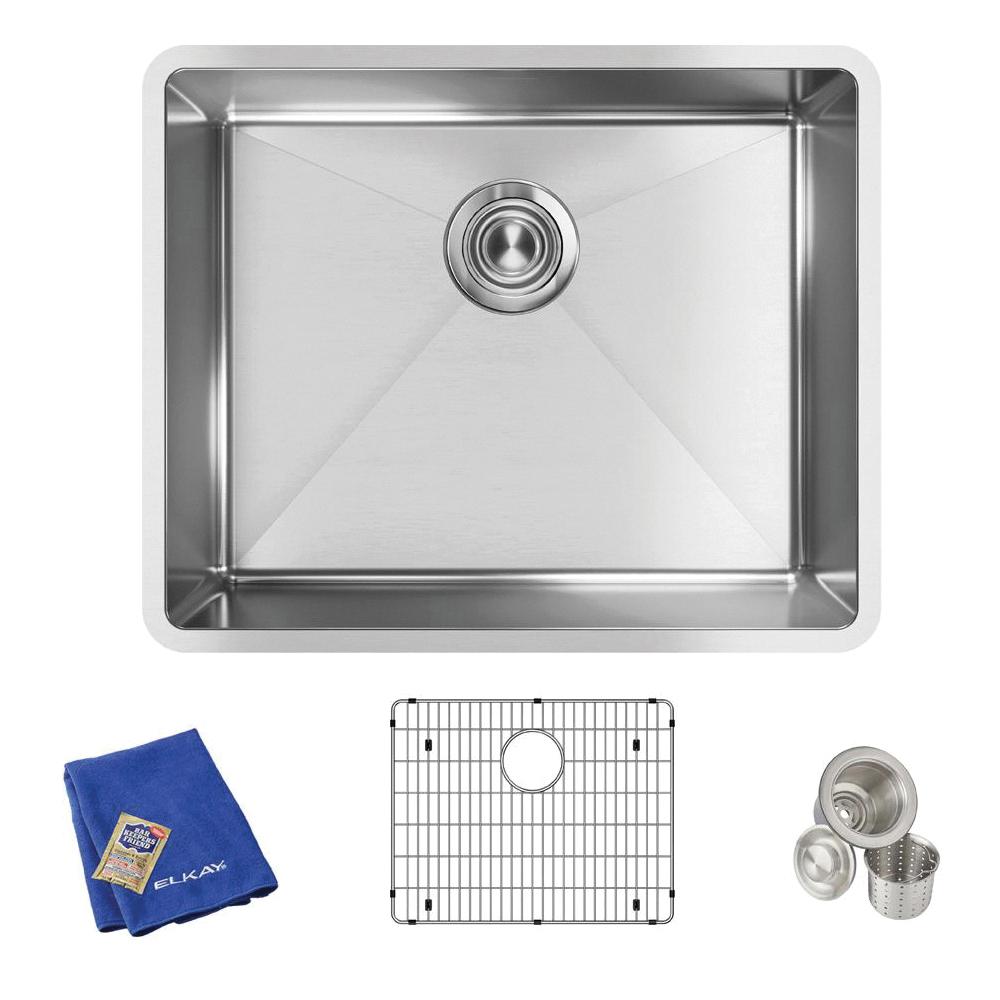 Elkay®, ECTRU21179TC, Kitchen Sink Kit, Transitional, Crosstown® Collection, Rectangle Shape, 21 in Bowl Length, 18-1/2 in Bowl Width, 9 in Bowl Depth, 3-1/2 in Drain Opening, 1 Bowls, 22-1/2 in L x 18-1/2 in W x 9 in H Overall, Undermount Mounting, 18 ga 304 Stainless Steel, Polished Satin, Import