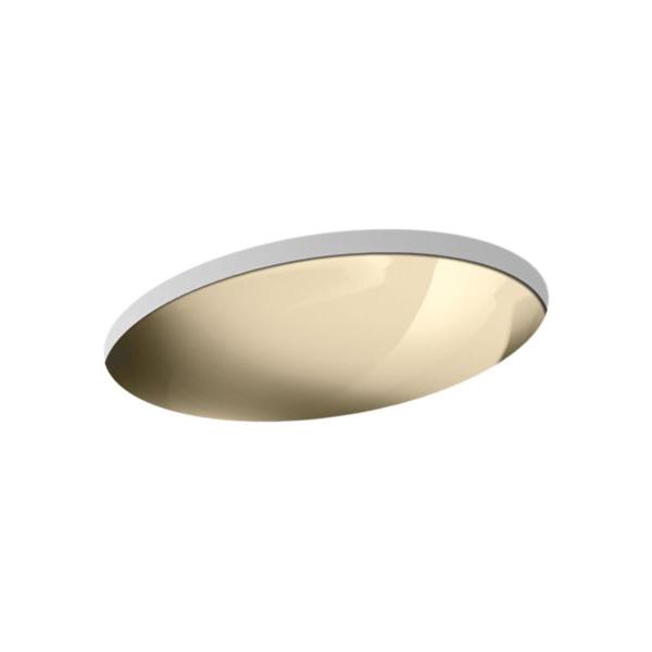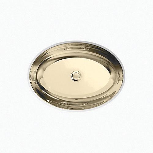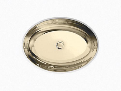 Kohler®, 2602-MF, Bathroom Sink, Rhythm® Collection, Oval Shape, 18 in L x 13 in W Bowl, 1-5/8 in Drain Opening, 1 Basins, 15-1/4 in W x 15-1/4 in D x 6-1/4 in H Overall, Undermount Mounting, Stainless Steel, Mirror French Gold, ADA Compliance: Yes