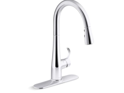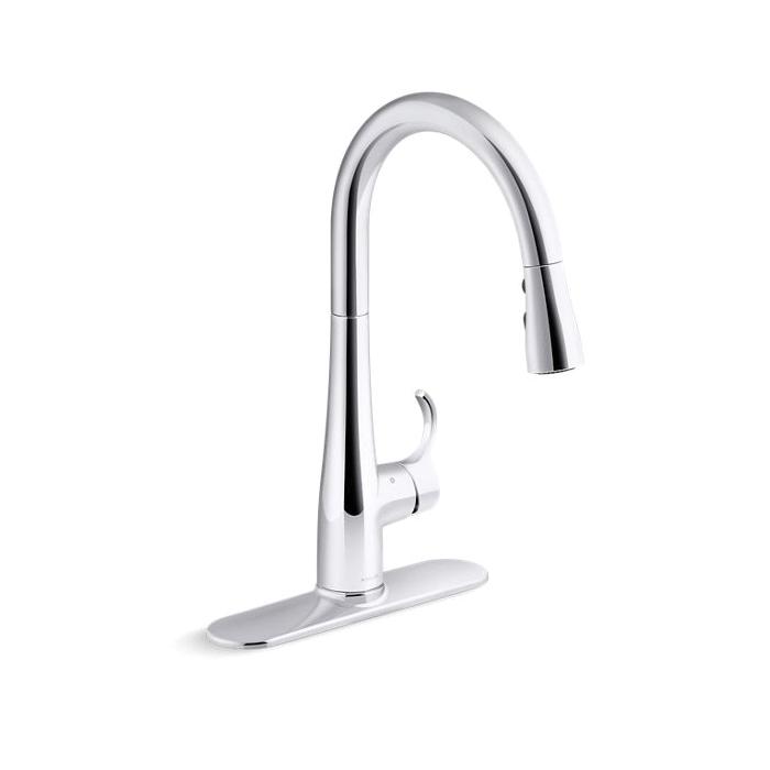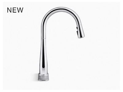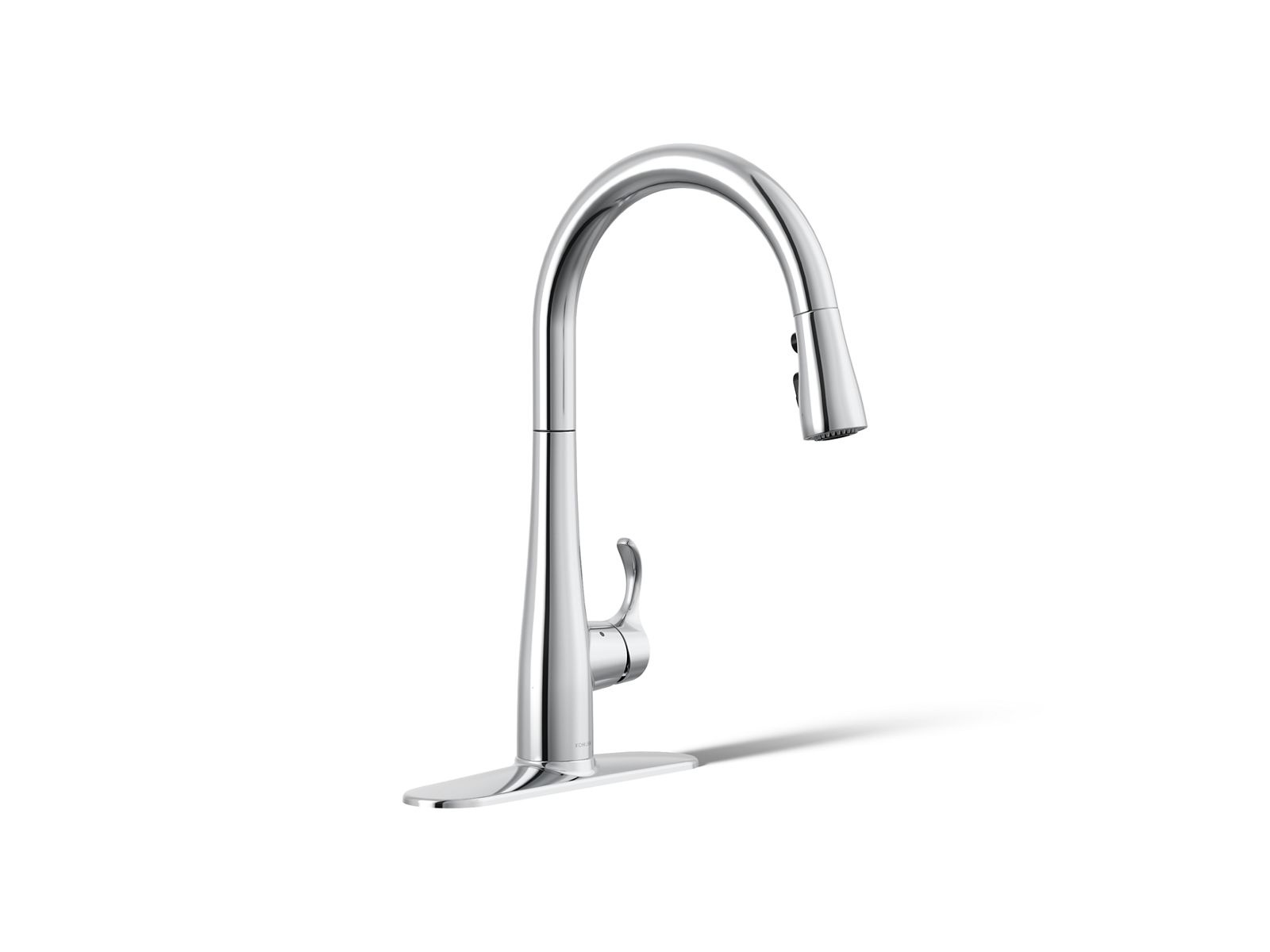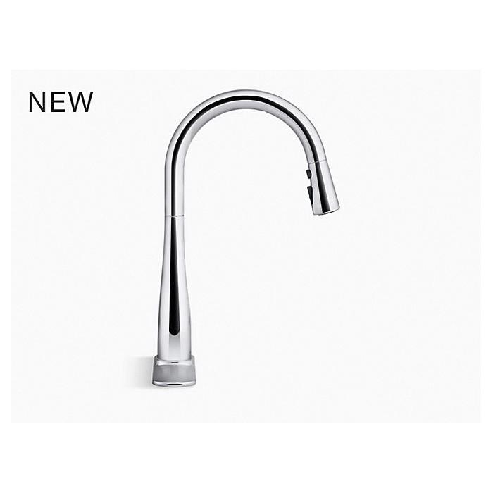 Kohler® Kitchen Sink Faucet, Touchless, Simplice® Collection, 1.5 gpm Flow Rate, Pull-Down Spout, 9 in Spout Reach, 9-3/8 in Spout Height, Lever Handle, 1 Handles, 3/8 in Connection, Compression Connection, 3 Spray Functions, 2-1/2 in Maximum Deck Thickness, Deck Mounting, Ceramic Disc, 9 in L x 8 in W x 16-9/16 in H, Metal, Polished Chrome