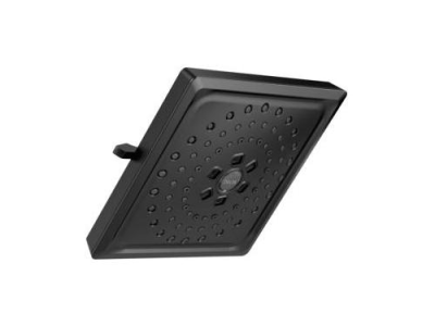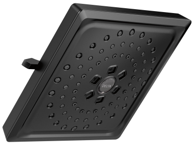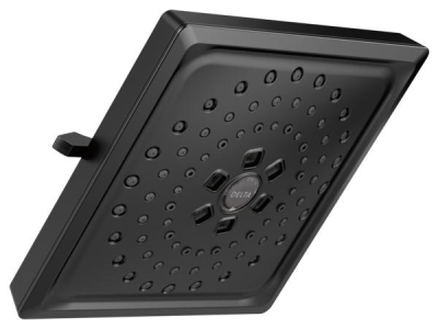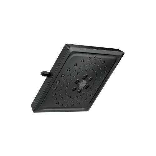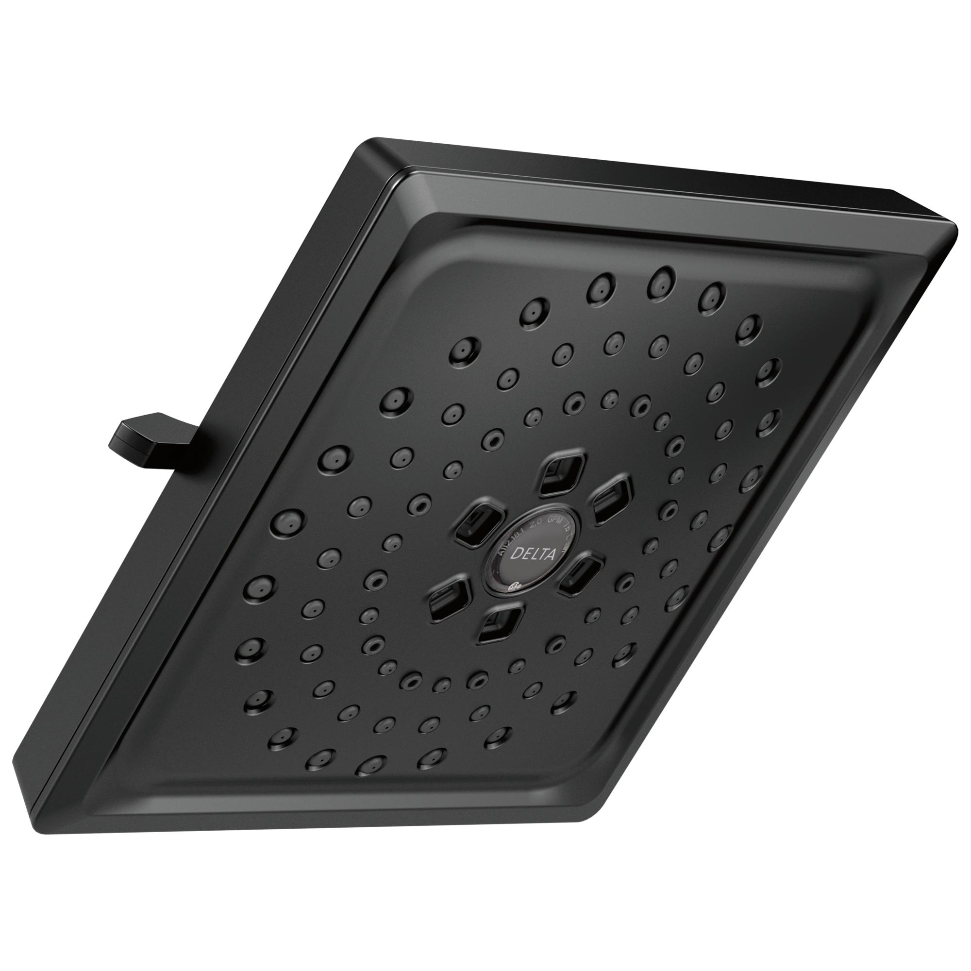 DELTA® Raincan Shower Head, 3-Setting, 2 gpm Flow Rate, 1/2 in IPS Connection, Squared Shape, 3 Sprays, Spray Pattern: Full Body/H2Okinetic®/Pause, 80 psi Pressure, 7-5/8 in Overall Length, 7-5/8 in Overall Width, 3-1/2 in Overall Height, ABS, Matte Black, Import