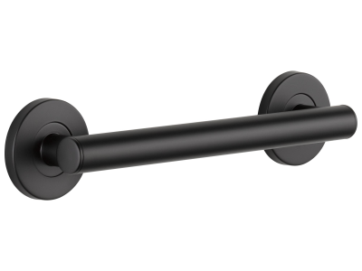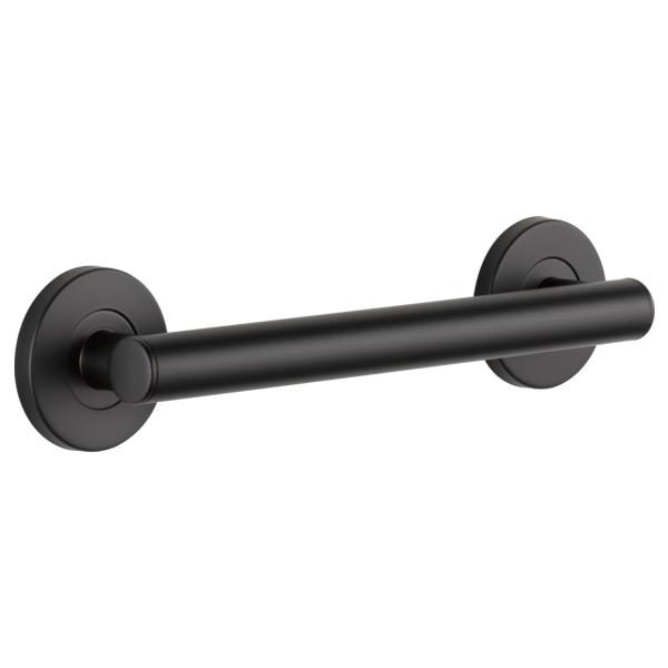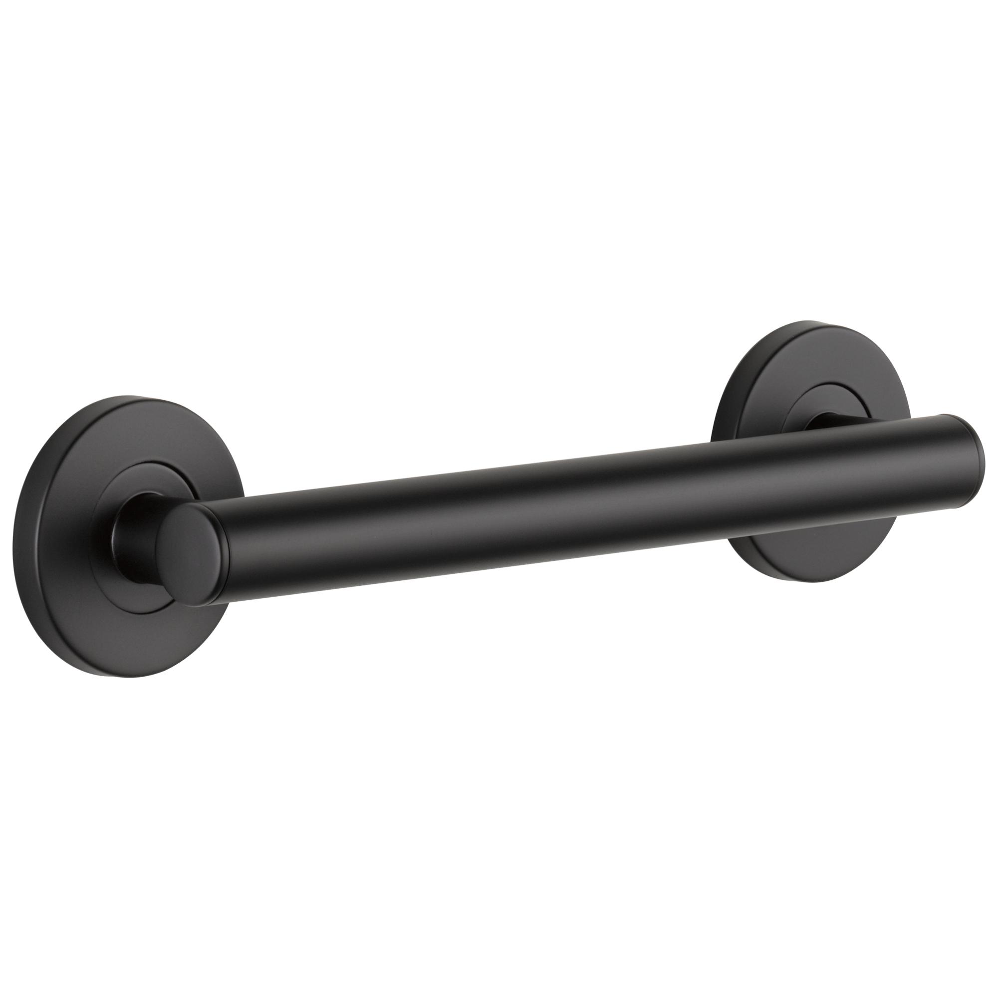 DELTA® Decorative Grab Bar, Round Contemporary, 1-1/4 in Dia, 12 in Length, 2-3/4 in Width, 3-1/2 in Height, 500 lb, Wall Mount, Stainless Steel, Matte Black, Import