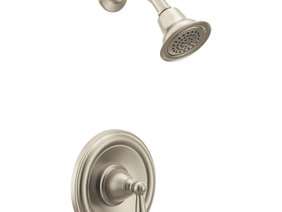 The Brantford Single-Handle Shower-Only Trim Kit from MOEN offers chic sophistication and reduced water consumption so your bathroom excels in form and function. The accompanying 3-1/2 in. diameter eco-performance showerhead offers a 1.75 GPM flow rate, earning WaterSense distinction for its conservative use of water while furnishing sufficient rinsing and cleansing throughput. A single-handle lever rotates 270 degrees to adjust water temperature, held steady by a compatible PosiTemp valve to keep flow at your preferred heat intensity. The sleek, lustrous brushed nickel finish is laden with a LifeShine protectant to guard against tarnishing, corroding or flaking, backed by a lifetime limited warranty to underscore its durability. Part of the M-PACT common valve system, this package makes it easy to substitute the trim without tweaking the plumbing should your future style preference change. This trim kit requires MOEN valve 2510, 2520, 2570 or 2590 (not included) to complete installation.