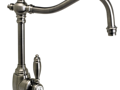 The American made Annapolis Kitchen Faucet exemplifies the pride and prestige of the US Naval Academy. A blend of tradition and state-of-the-art technology, the Annapolis' design is rich in tradition and adds a lifetime of elegance to any kitchen. Made with a decorative, curving hook spout with 10-1/2" reach. Spout can swivel 360 degrees to reach most parts of the sink. The single lever handle can be easily mounted and positioned with handle in front, right or left. Handle can also adjust 22.5 degrees in either direction for backsplash clearance. Aerated tip has a 1.75 gpm maximum flow rate. Built from solid brass construction for years of durability. Why not make it a Suite? Add matching traditional accessories and filtration faucets that will dazzle any sink area. All Waterstone kitchen faucets include a built-in diverter for connection to optional sink side spray. For great tasting, clean water, the Annapolis is compatible with reverse osmosis filtration systems. Available in 30 elegant finishes and comes with a Lifetime Functional Warranty. Annapolis' historical richness will enhance the look of any traditional kitchen design. And, of course - Made in the USA!