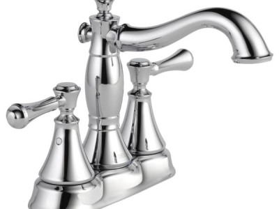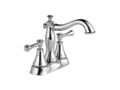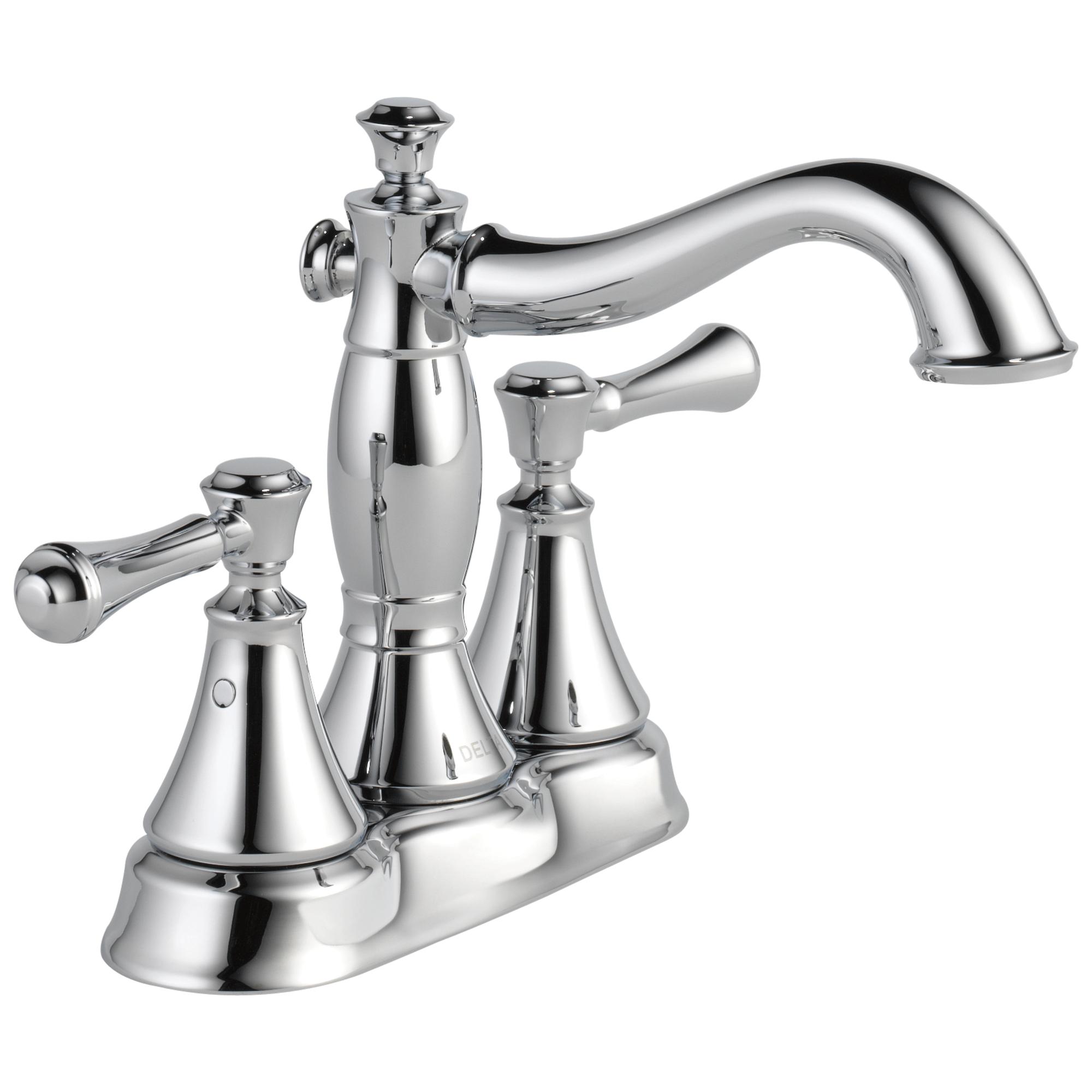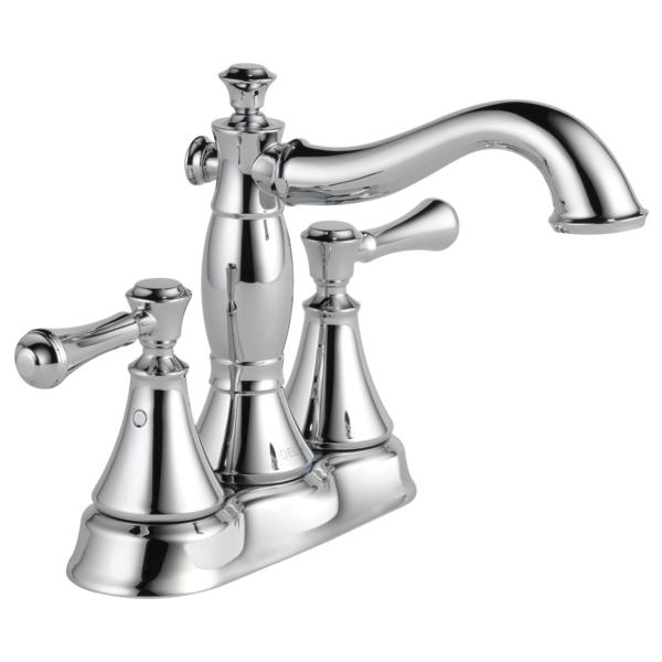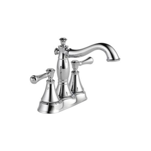 DELTA® 2597LF-MPU Cassidy™ Centerset Lavatory Faucet, Polished Chrome, 2 Handles, Metal Pop-Up Drain, 1.2 gpm Flow Rate