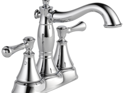 DELTA® Centerset Lavatory Faucet, Cassidy™, 1.2 gpm, 4 in Center Distance, High-Arc Spout, 5-13/32 in Spout Reach, 4-25/32 in Spout Height, Lever, 2 Handles, Metal Pop-Up Drain, 3 Faucet Holes, 1/2-14, NPSM, 1-7/8 in Maximum Deck Thickness, Deck Mount, Ceramic Valve/Cartridge, 9-23/32 in W x 6-1/4 in H, Solid Brass, Polished Chrome, Import, Commercial