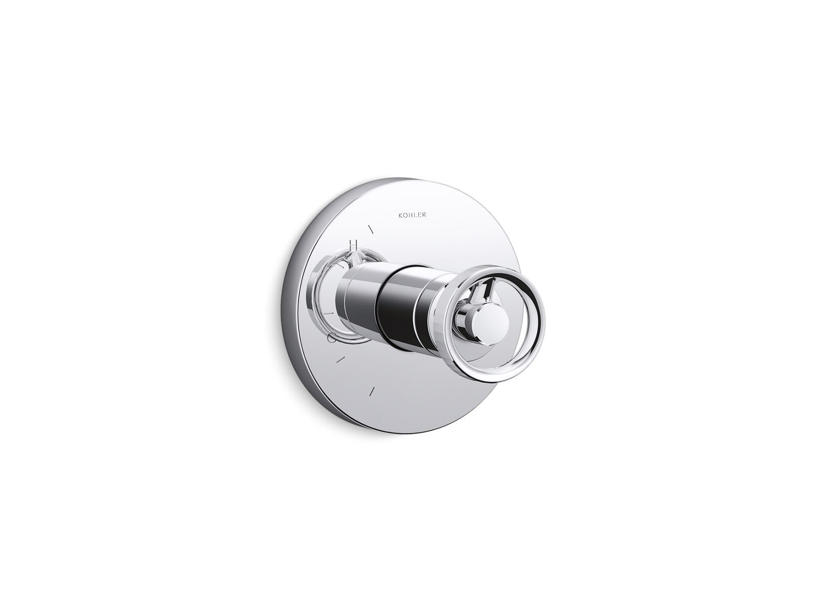 Modern form meets modern function: the KOHLER® Components collection is defined by controlled forms and stark precision in every line and angle. With Components, you design your custom bath by selecting your handle style and finish. This shower trim features an Industrial handle modeled after machine valves and factory pipe design. Pair this trim with a showerhead and a Rite-Temp pressure-balancing valve, which maintains your desired water temperature during pressure fluctuations.