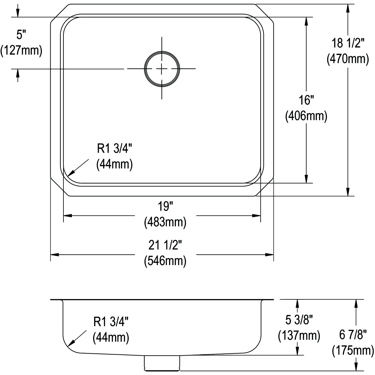 Elkay®, ELUHAD191655PD, Kitchen Sink, Traditional, Dayton® Collection, Rectangle Shape, 19 in Bowl Length, 16 in Bowl Width, 5-3/8 in Bowl Depth, 3-3/8 in Drain Opening, 1 Bowls, 21-1/2 in L x 18-1/2 in W x 6-7/8 in H Overall, Undermount Mounting, Stainless Steel, Lustertone
