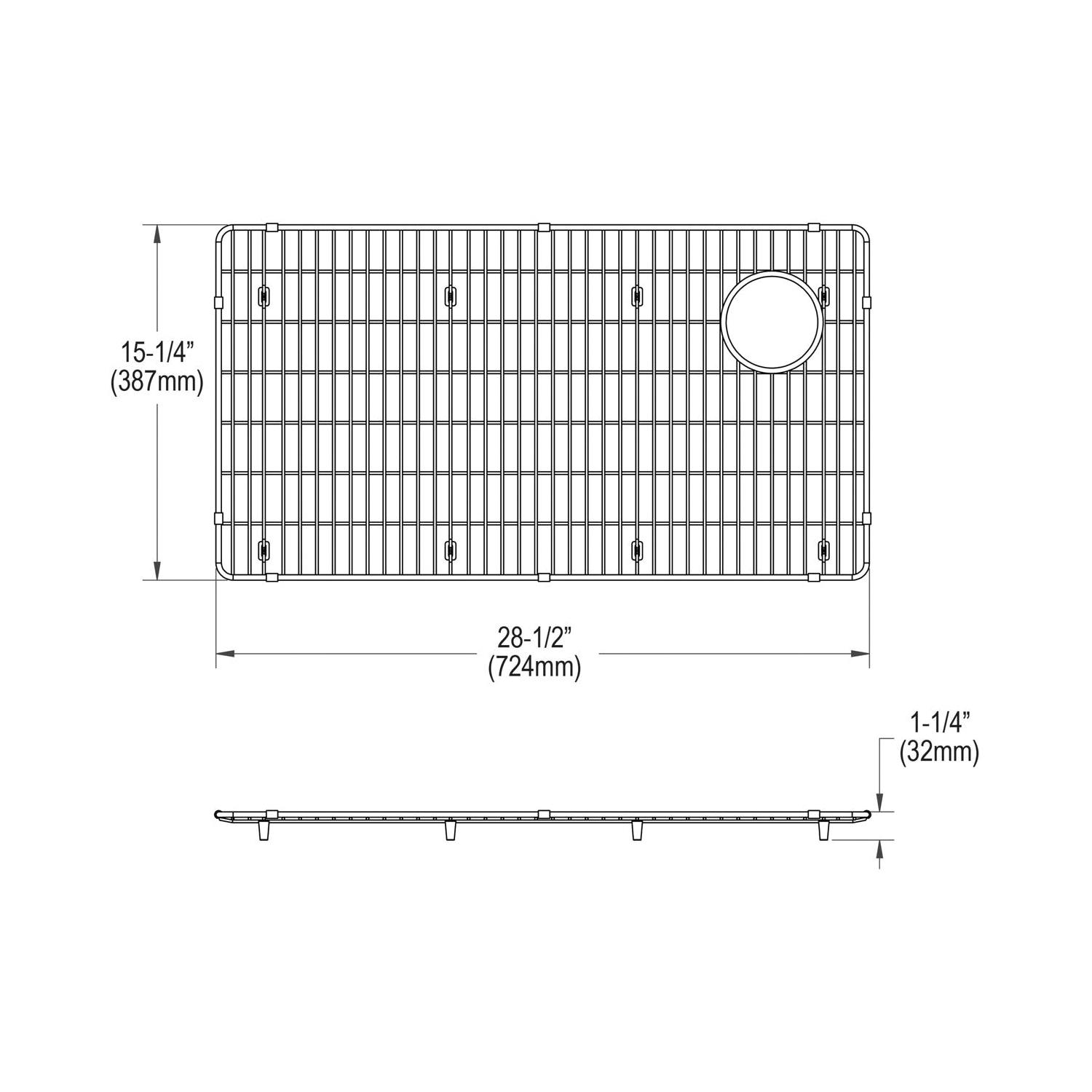 Elkay® Bottom Grid, Crosstown®, 28-1/2 in Length, 15-1/2 in Width, 1-1/4 in Height, Stainless Steel, Polished Stainless Steel, Import