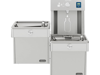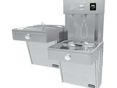 Unit shall include bi-level electric water cooler with bottle filling station. LVRCTL8WS shall deliver 8 gph of 50 deg F drinking water at 90 deg F ambient and 80 deg F inlet water. LVRCTLDDWS shall deliver non-chilled drinking water. Units shall be stainless steel construction and include vandal-resistant pushbutton activation. Cooler shall include vandal-resistant bubbler. Bottle filling unit shall include an automatic 20 sec shut-off timer. Shall include Green Ticker displaying count of plastic bottles saved from waste. Bottle filler shall provide 1.1 to 1.5 gpm flow rate with laminar flow to minimize splashing. Shall include the WaterSentry Plus 3000 gal capacity filter, certified to NSF/ANSI 42 and 53, with visual monitor to indicate when replacement is necessary. Unit shall meet ADA guidelines. Unit shall be lead free design which is certified to NSF/ANSI 61 and 372 and meets federal and state low lead requirements. Unit shall be certified to UL399 and CAN/CSA 22.2# 120.