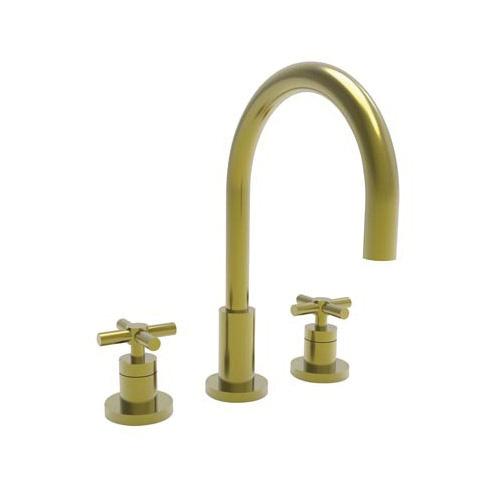 Newport Brass® Widespread Lavatory Faucet, Series: Model 990, East Linear, 1.2 gpm, 8 to 20 in Center Distance, Fixed Spout, 7-1/8 in Spout Reach, 6-1/8 in Spout Height, Contemporary Cross, 2 Handles, Pop-Up Drain, 3 Faucet Holes, 1/2 in, NPSM, 1-1/2 in Maximum Deck Thickness, Deck Mount, 1/4 Turn Washerless Ceramic Disc Valve/Cartridge, 11-9/16 in H, Solid Brass, PVD Satin Brass