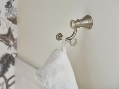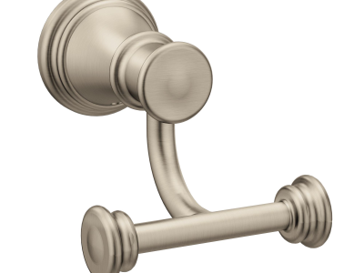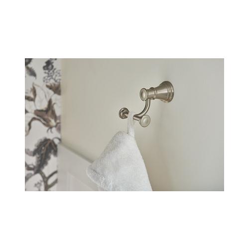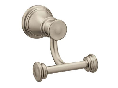 Moen®, YB6403BN, Robe Hook, Double, Belfield™ Collection, 3-1/4 in Overall Width, 3.76 in Overall Depth, 3.14 in Overall Height, Wall Mounting, Zinc, Brushed Nickel, Import
