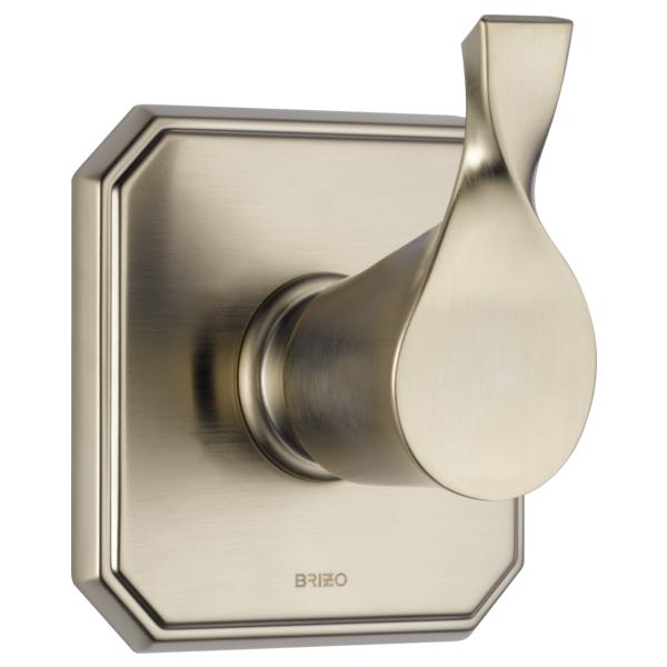 Brizo® Diverter Trim, 3-Function, Collection: Virage®, 1 Handles, Lever Handle, 4-1/2 in W x 4-1/2 in H Trim, 1/2 in Valve Inlet, 1/2 in Valve Outlet, Hand Shower Yes/No: No, Wall Mount, Zinc, Brushed Nickel, Domestic