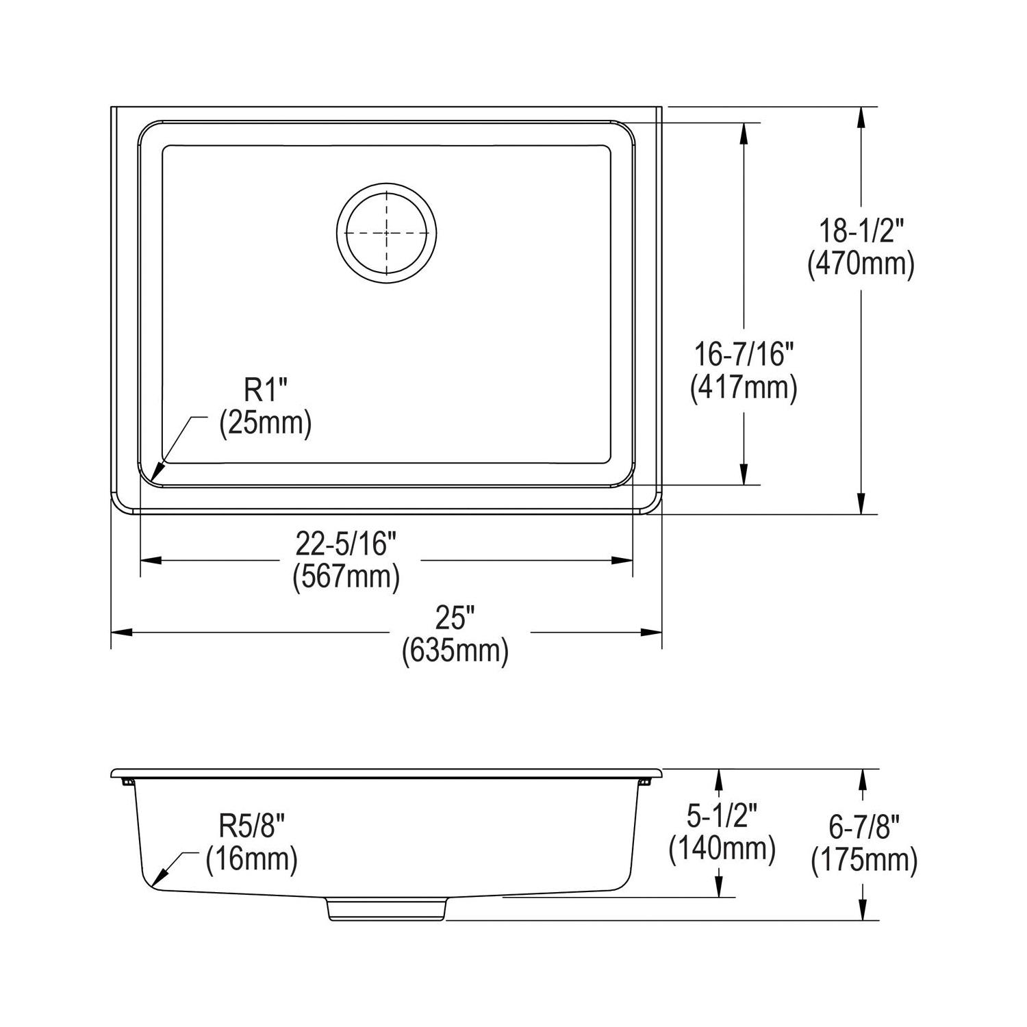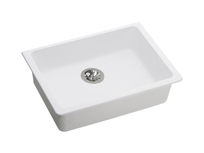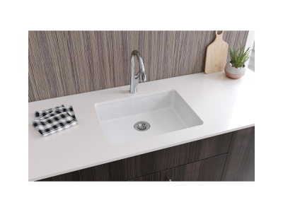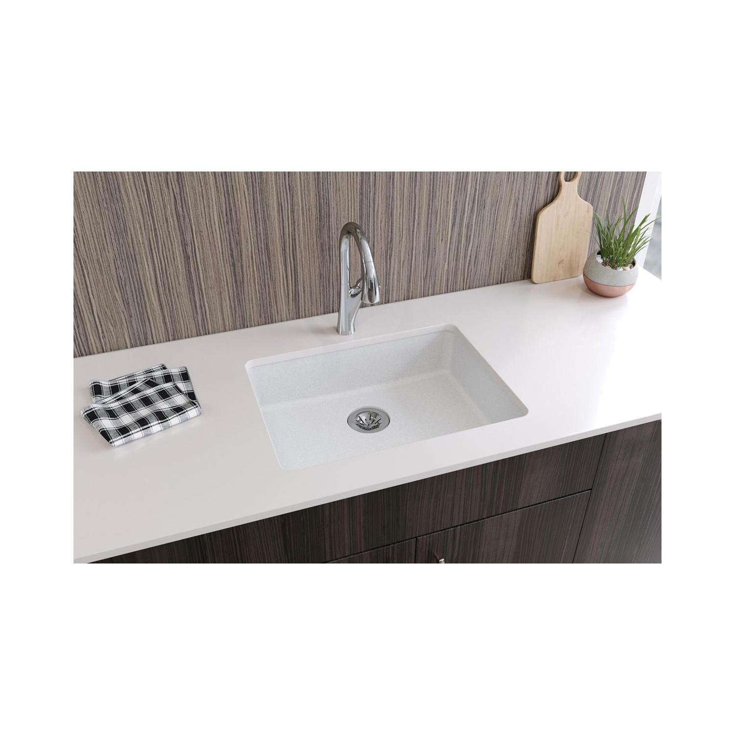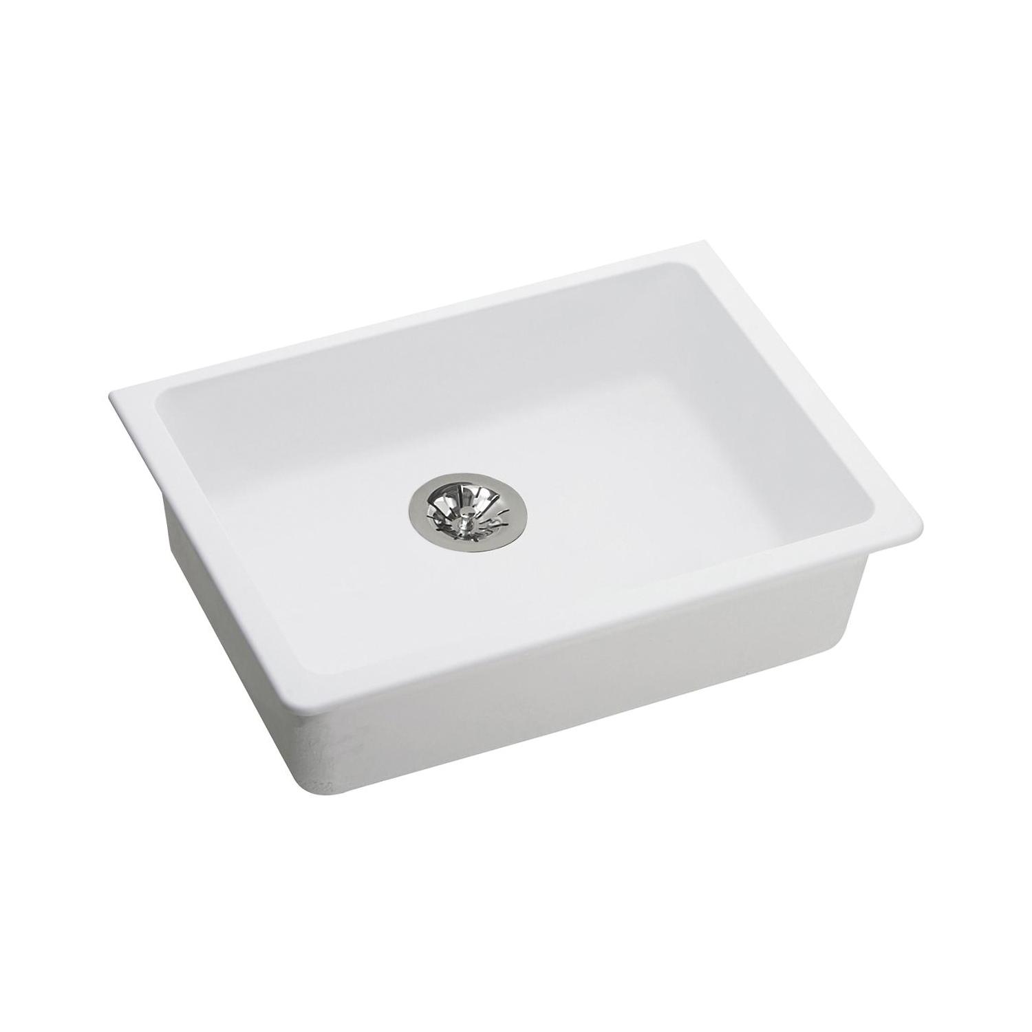 Elkay®, ELGUAD2519PDWH0, Kitchen Sink, Transitional, Quartz Classic® Collection, 22-5/16 in Bowl Length, 16-7/16 in Bowl Width, 5-1/2 in Bowl Depth, 3-5/8 in Drain Opening, 1 Bowls, 25 in L x 18-1/2 in W x 6-7/8 in H Overall, Undermount Mounting, White, Import