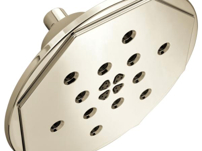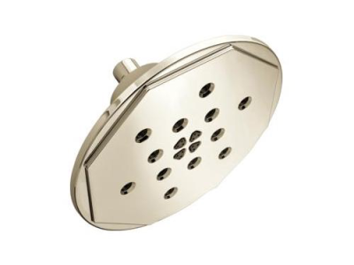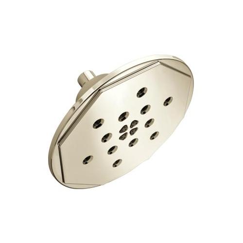 Brizo®, 87461-PN, Raincan Shower Head, Multi-Function, Rook™ Collection, 2 gpm Flow Rate, 1/2-14 NPSM Connection, Round Shape, 4 Sprays, Spray Pattern: Full Body H2Okinetic®/H2Okinetic® Invigorating/Massage/Pause, Wall Mounting, 80 psi Pressure, 3-7/8 in Overall Width, 8 in Overall Height, Plastic, Polished Nickel, Import