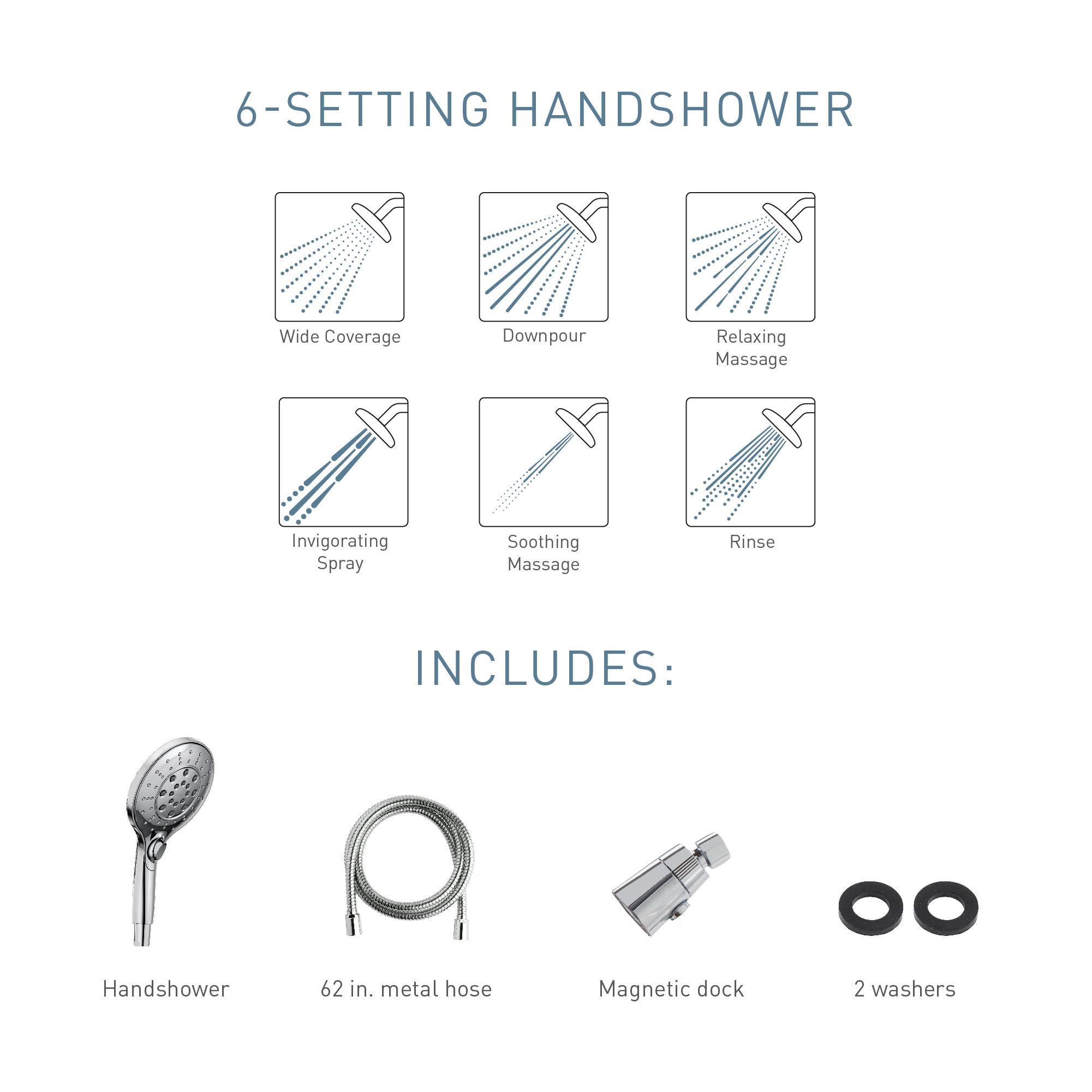 Moen®, 3662EPORB, Shower, 6-Function Eco-Performance, Series: 3662EP, Attract Collection, 5-1/2 in Shower Head Diameter, 1.75 gpm Flow Rate, 59 in Hose Length, Wide Coverage/Downpour/Rinse/Massage/Relaxing Massage/Invigorating Spray, 80 psi Pressure, Oil Rubbed Bronze, With Slide Bar: No, Domestic