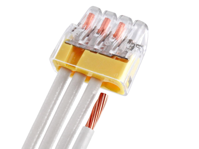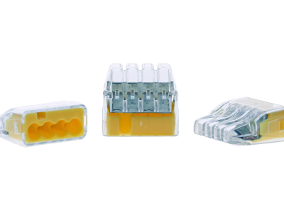 Ergonomic design for easy grip and comfortable installationLow insertion force for fast and easy connectionsCompact size makes installation easyClear shell gives visual verification of connectionTough, UL 94V-2 flame-retardant shell rated at 105°C (221°F)Approved for bonding and grounding applicationsStrip, push, connect – the fastest way to make a connection.The In-Sure Push-In Wire Connector is perfect for residential, light commercial, lighting retrofit, and pre-fab wiring systems, or any other branch circuit wiring application where a traditional twist-on wire connector would be used. Simply push the wire in – the low insertion force makes it easy.The color-coded shell allows for quick identification of port configuration while the clear polycarbonate housing allows for visual verification of every connection. The ergonomic design is easier to grip which means more comfortable push-in connections. The compact size makes for easy installations in even the tightest spots or shallow boxes, and the tough, flame-retardant shell stands up to the harshest environments.UL Listed, CSA Certified, and rated to 600V – the In-Sure saves time and improves productivity while perfecting connections.