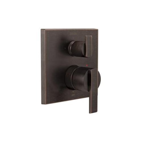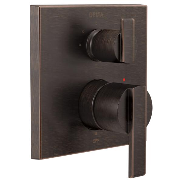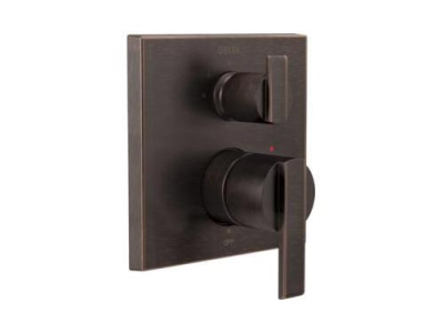 DELTA® Valve Trim, 3-Setting Angular Modern, Series: Monitor® 14, Ara® Collection, Integrated Diverter Spout, 2 Handles, Lever Handle, 6-13/16 in W Trim, 1222 Pressure Balanced, For Use With: MultiChoice® R22000 Series Universal Rough-In Valve Body, Venetian Bronze