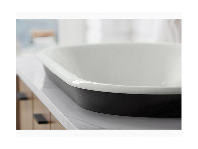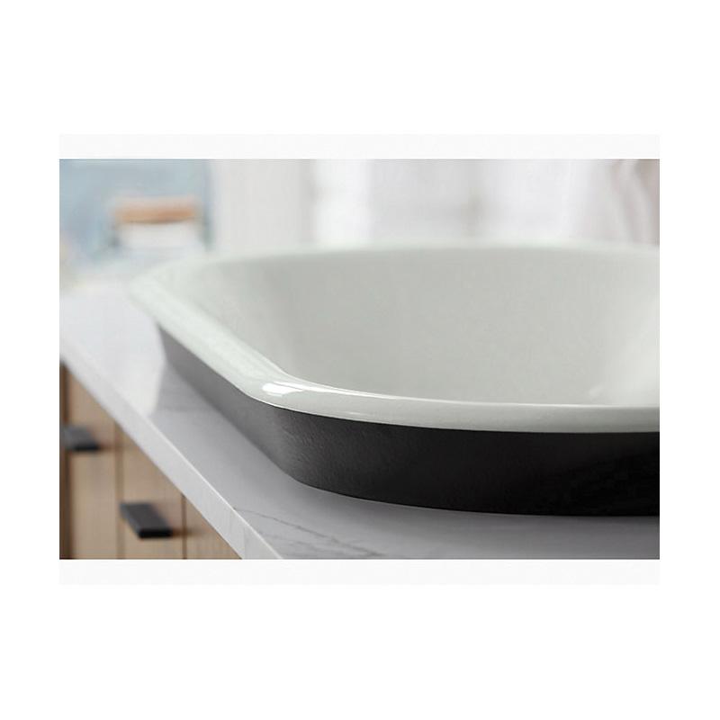 With its gently curved, organic shape, the KOHLER® Iron Plains sink combines distinctive style with the extreme durability, strength, and vintage soul of KOHLER® enameled cast iron. This 33" capsule-shaped painted underside offers two installation options - drop-in or undermount - giving you flexibility for a range of bathroom configurations.