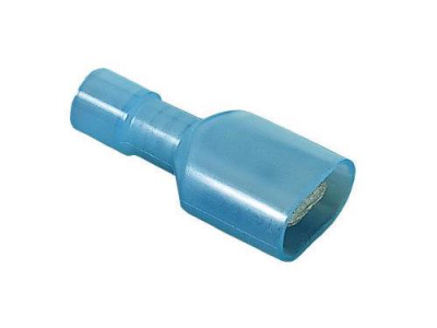 IDEAL® Male Disconnect Terminal, Fully Insulated Vinyl, 16 to 14 AWG Conductor, 0.25 x 0.32 in Tab, Shouldered Barrel, 300 V AC, Specifications: 0.185 in Dia Insulation, Brass/Nylon, Blue, Tin Plated, 0.945 in L Dimensions