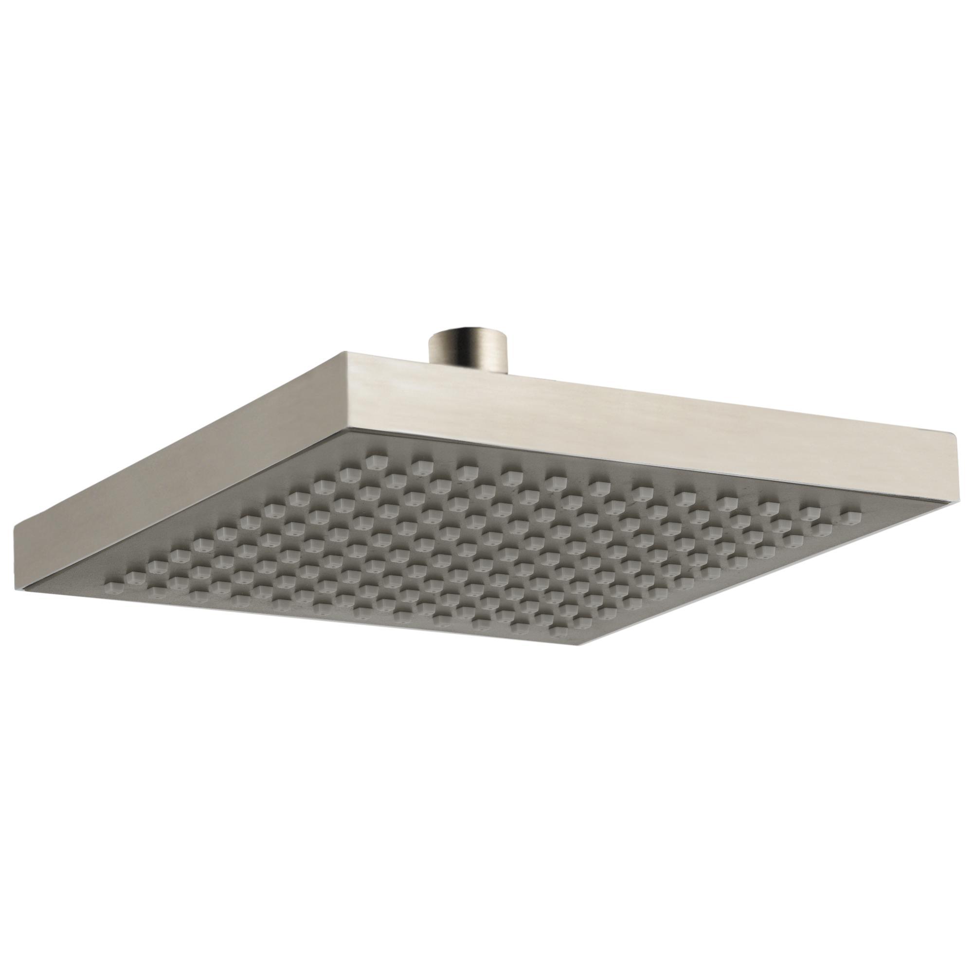 DELTA® Raincan Shower Head, Universal, 2.5 gpm Flow Rate, 1/2 in Connection, Squared Shape, 1 Spray, Spray Pattern: Soft Rain, 80 psi Pressure, 8 x 2-1/2 in Head, Stainless Steel, Import