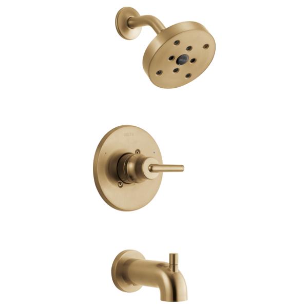 DELTA® Tub and Shower Faucet Trim, Series: Monitor® 14, Trinsic® Collection, 1.75 gpm Shower Flow Rate, Pull-Up Diverter Spout, 6-3/16 in Spout Reach, 1 Handles, Metal Lever Handle, 6-1/2 in Dia Trim, 1222 Pressure Balanced, Hand Shower: No, Spray Pattern: H2Okinetic®, 1 Spray Functions, Wall Mounting, For Use With: For use with MultiChoice® Universal Rough-In Valve Body(R10000 Series), Brass, Brilliance® Champagne Bronze