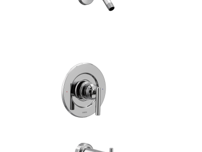 Moen® Tub and Shower Trim, Series: T2903, Gibson™, Slip-Fit Diverter Spout, 6-1/2 in Spout Reach, 1 Handles, Metal Lever Handle, 7 in Dia Trim, 1222 Pressure Balanced, Wall Mounting, Metal, Polished Chrome, 7 in W x 6-1/2 in D x 7 in H, Domestic